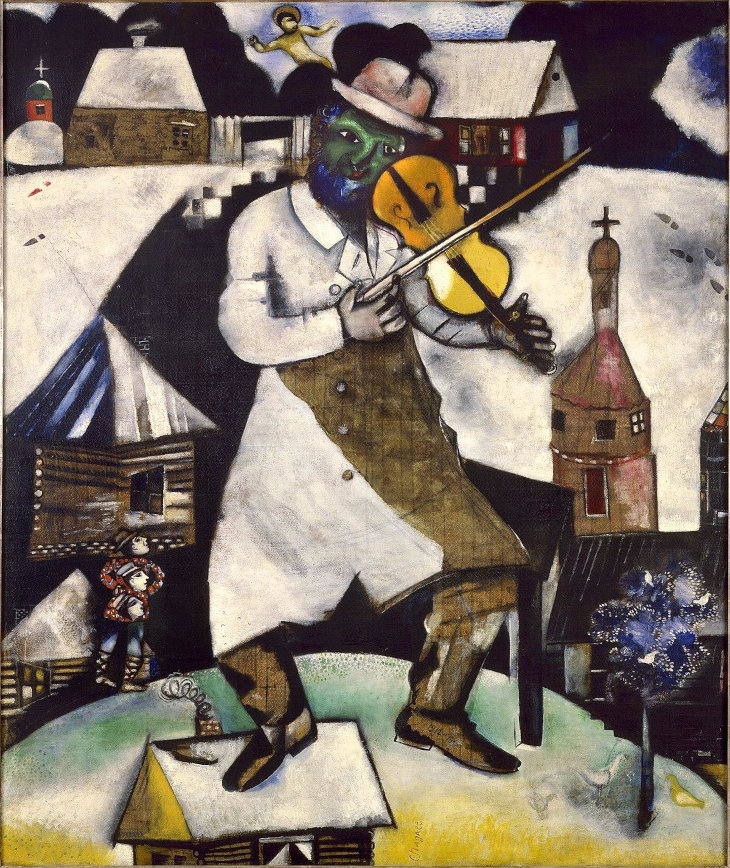 In 1910 the artist moved to Paris where he lived the bohemian artist lifestyle. In Paris Chagall produced some of his most famous paintings and his subject matter was the Jewish life in the Shtetl, the most famous being The Fiddler, 1913. The Nazis despised his works and displayed his art in the “Degenerate Art” exhibition that was held in Munich in 1937. The artist and his family fled to New York, and eventually moved back to France in 1948.