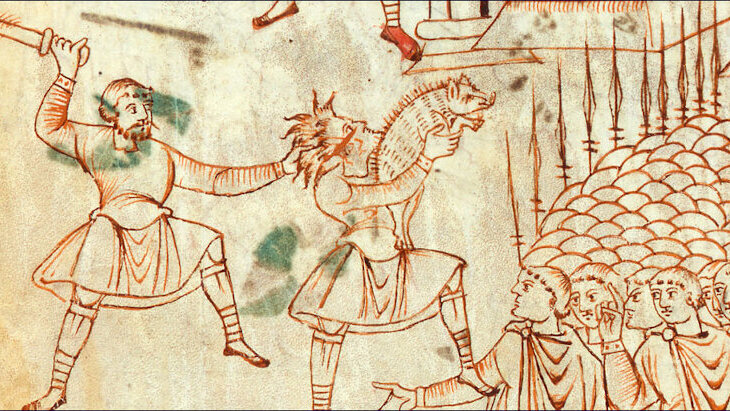 But there is a Hellenized Jew in the town who is willing to do what is unspeakable in Jewish eyes. As he's about to sacrifice the pig, Mattathias stabs him, also killing the Greek official present. He then turns to the crowd and announces: "Follow me, all of you who are for God's law and stand by the covenant." (1-Maccabees 2:27)