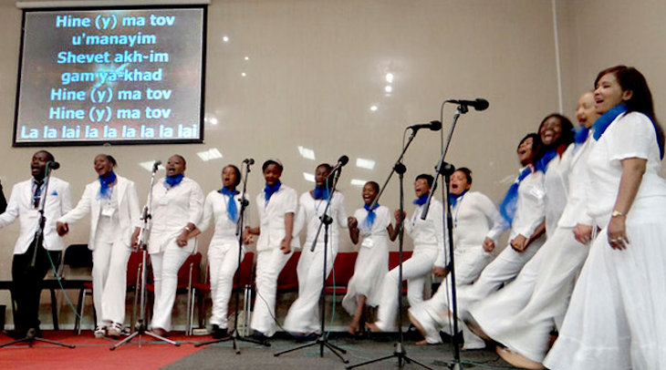 Shmuel’s church choir leads a rousing rendition of a popular Hebrew song