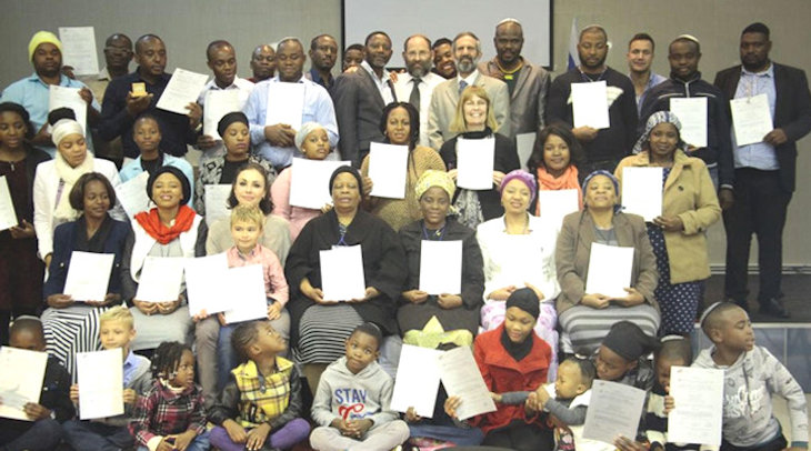 Today, five of Shmuel’s former congregants are undergoing the conversion process, and more are expected to join. I ask Shmuel if it’s a challenge, given the small number of blacks in the South African Jewish community. “The Jewish community welcomed us very fast,” he says. “We never experienced any kind of discrimination.”
