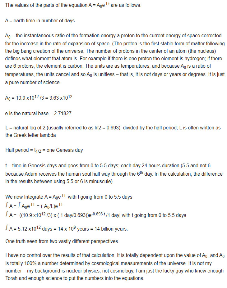 The fun part of the calculations comes when the equation is evaluated day by day and we can compare the claims of the Bible for each Genesis day with the discoveries in science for those days.