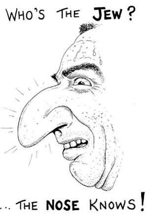 Nazi propaganda routinely depicted Jews with grotesque, exaggerated noses. When Otto Dietrich, the Nazi Reich press chief from 1937 to 1945 was convicted of war crimes after the Holocaust, the judge noted in his decision that “It is…clear that a well thought-out, oft-repeated, persistent campaign to arouse the hatred of the German people against Jews was fostered and directed by the press department and its press chief…” Routinely printing distorted images of Jews with grotesque noses was a key part of that propaganda. (Quoted from The Jewish Enemy: Nazi Propaganda During World War II and the Holocaust by Jeffrey Herf: 2006.)