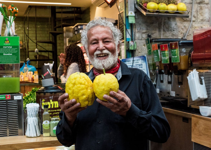 Chewing Gat leaves is a centuries-old custom. It was introduced to Israel by Yemenite Jews who immigrated en masse in 1949 and 1950 bringing with them the tradition of chewing Gat leaves. Uzi-Eli, the Etrogman (pictured above), popularized his EtroGat juice in the Machaneh Yehudah market of Jeruaslem.