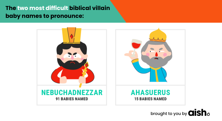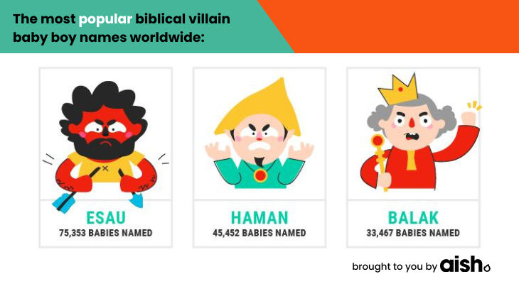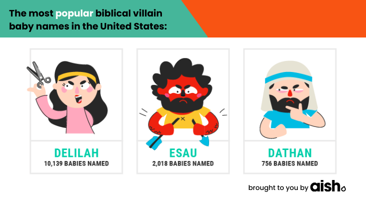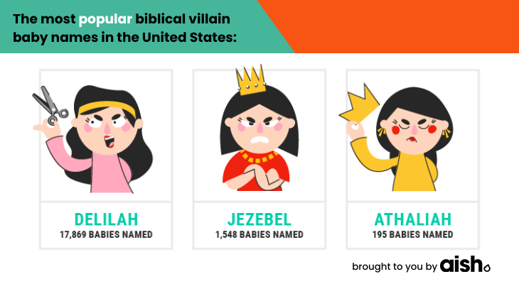 Here are some of the most popular biblical villain names from around the world, with a few insights into these characters’ personalities and the major events in their lives. Learn how to pronounce these names because in 15 or 20 years you may be hanging out with these babies at parties.