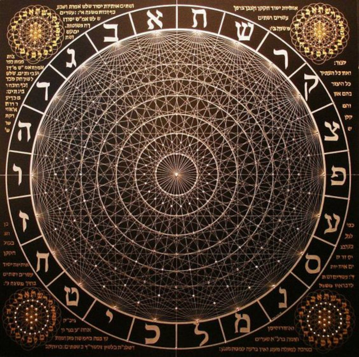 Sefer Yetzirah Wheel with Tree of Life and Hebrew letters