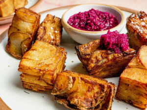 Roasted with sumac, these potatoes are zesty and aromatic, adding brightness to any meal. Their crispy exterior and soft interior make them a deliciously simple yet impressive side.