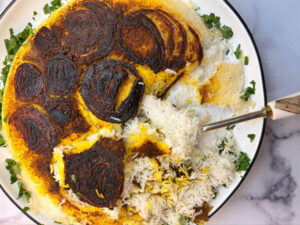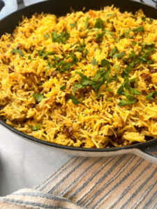Seasoned with warm baharat spices, this rice dish is both fragrant and flavorful. It’s an ideal pairing with turkey and is simple to reheat, with the spices infusing even more as it sits.