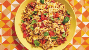 A fusion of ptitim (Israeli couscous) and mujadara, this dish brings together lentils, caramelized onions, and couscous for a comforting, savory side. It’s an excellent make-ahead dish that adds both texture and protein to your plate.