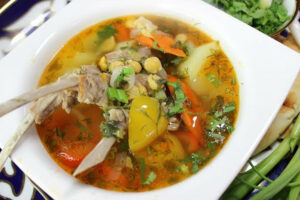 Bukharian soups you’ll want to try include lagman, a combo of meat, thick noodles, and vegetable and sherpa, a rich, fatty broth generously filled with lamb and vegetables.