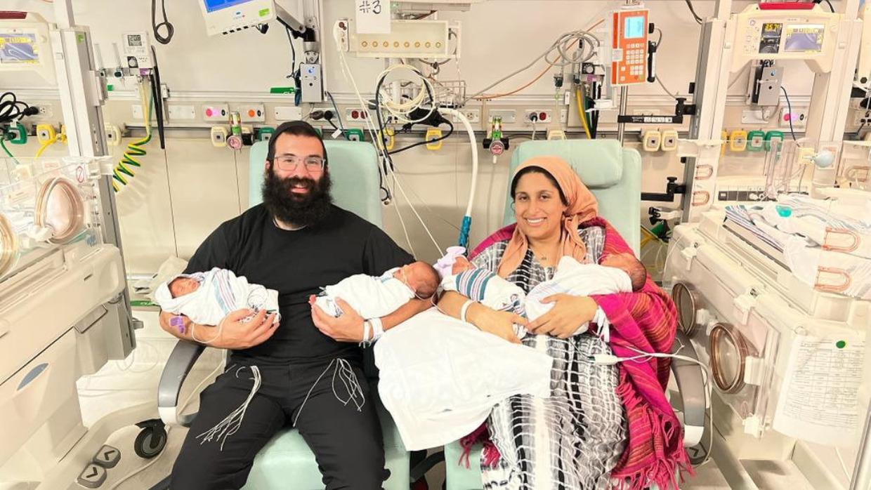 Rabbi Yisroel and Sara Gutovitch, a Los Angeles-based couple, gave birth to quadruplets on July 4th. They missed the traditional fireworks display but had their own celebration at Cedars-Sinai Medical Center instead. The babies, or the “quad squad” as their parents call them, are doing well. One is now home, and three of them are currently in the NICU. Their older brother, Chezzy, only three, is anxiously waiting to meet his other siblings.