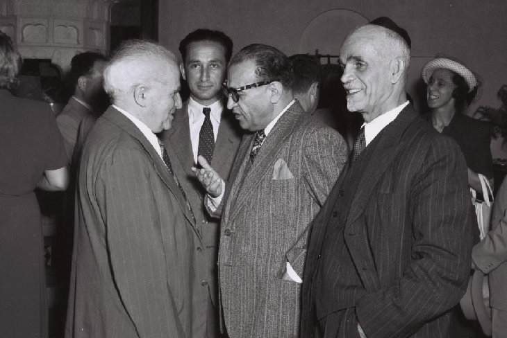 Iranian Minister Plenipotentiary Reza Safinia, center, who represented Tehran in Israel, chats with then-prime minister David Ben-Gurion at a party in Jerusalem, June 1, 1950. (photo credit: Teddy Brauner/GPO)