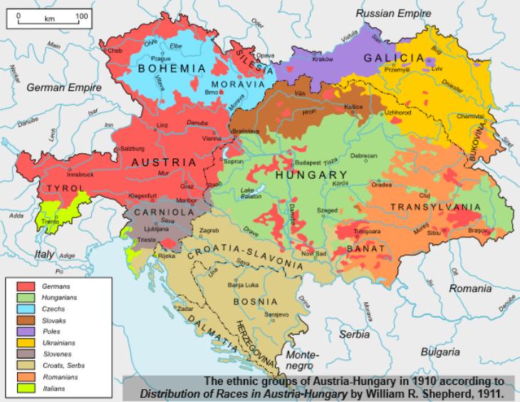 2 A map of Transylvania and surrounding areas, depicting the distribution of ethnic groups in 1910