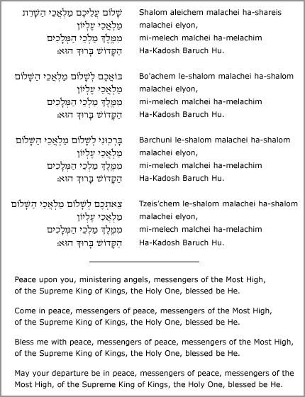 Shalom Aleichem is a Hebrew idiom—it literally means, “peace unto you” (or technically, “y’all,” in that the “you” here is plural)—and is used as a way to say, “Welcome.” But who are you welcoming? It’s not your guests or family members returning from synagogue. Rather, it’s angels, which, to the uninitiated, might seem a little weird.