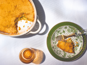 A classic Shabbat favorite, potato kugel is golden and crispy on the outside and soft within. It’s a hearty, comforting side that pairs well with almost any main and is especially good with turkey.